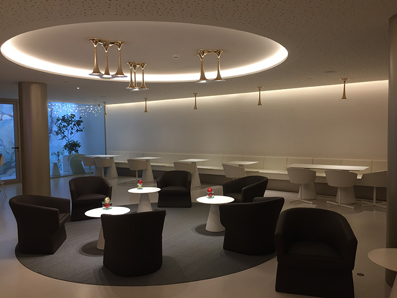 Se realizó la construcción y los diferentes acabados decorativos con placa de yeso laminado. En este proyecto cuenta con muchos elementos curvos como los elementos decorativos del techo o las escaleras, para los cuales se utilizaron placas de yeso laminado especiales. Al ser un local comercial con mucha afluencia de público, los materiales escogidos no solo tenían que tener una función meramente decorativa, sino que cumplieran las funciones de insonorización y aislamiento térmico. |